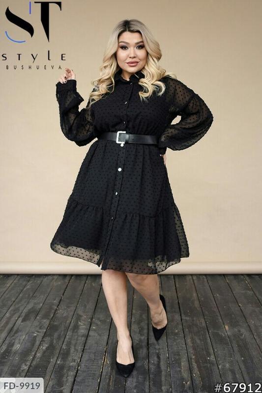 со14.09 Сукня-сорочка FD-9917 модель: 8634/1 Размиры: 50, 52, 54, 56, 58, 60 Ткань: шифон (горох) + ремень Цвет: молоко Длина: 102-104см Длина рукава (от горловины): 76см