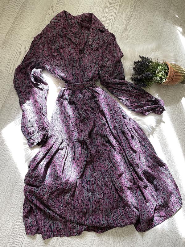 Неймовірна вінтажна сукня! Підійде на М впевнено, на S буде теж класно, але трохи оверсайзно. Йде на ґудзиках в тон в зоні грудей.