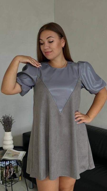 ● Сукня ● Цена 670 грн ● Артикул : R1555/5459 ● Цвет: стальный ● Ткань : эко-кожа + замш ● Размер : 42-44, 46-48 ● Мы на связи 24/7 ● Отправка: пн, ср, сб