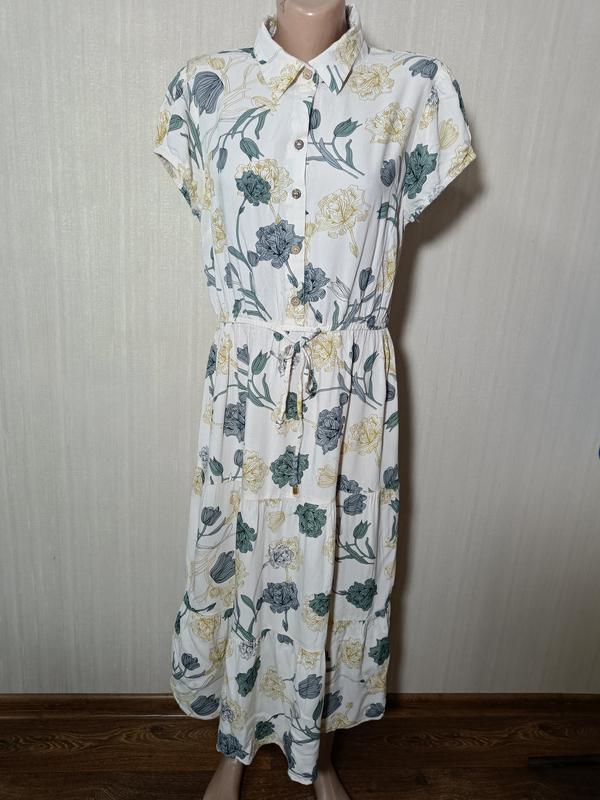 Женское платье с коротким рукавом. 100% вискоза размер М длина 116 см ог 50 см рукав 13 см качество отличное. ткань мягкая и приятная на ощупь. без нюансов
