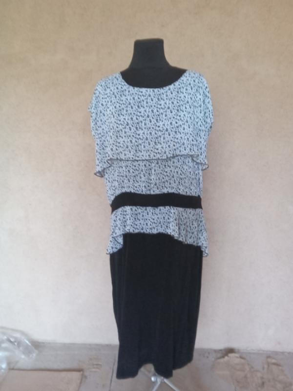 состояние отличное, без недостатков,верх легкий,цветочный принт,в поясе и низ юбки из искув.трикотажа в виде мелкого рубчика,сильный стрейч, красивое платье пог 66 см пот 51 см + тягнеться до 66 см поб 60 см -86 см тянется,хороший стрейч, как милый рубчик длина 116 см, но носится короче, так что подбьется вверх