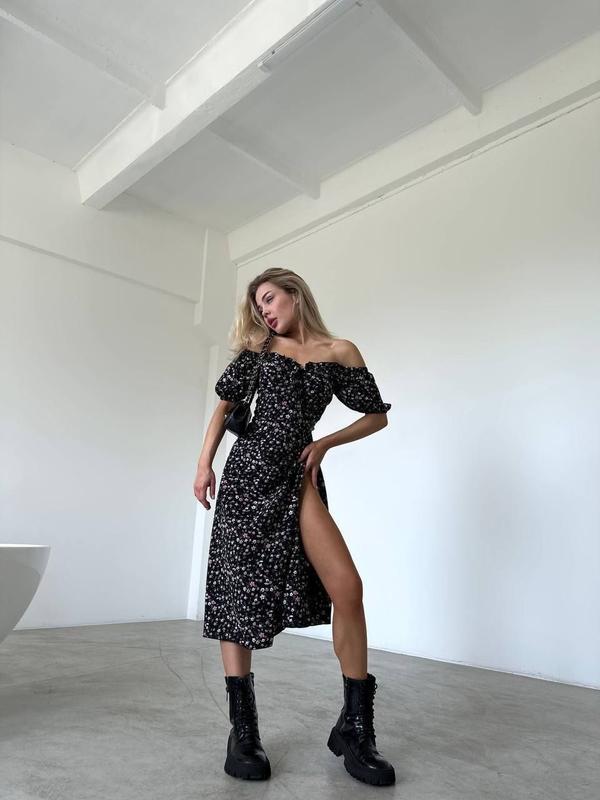 Арт 1557-146 д Размер 42-44, 44-46 А Тканина софт А Цвет - зеленый, голубой, белый и черный Высокое качество пошива и ткани Фото наживо Нежное и легкое платье в цветочный принт, оно очаровывает с первого взгляда, это платье подарит вам уверенность в женской привлекательности. В живу