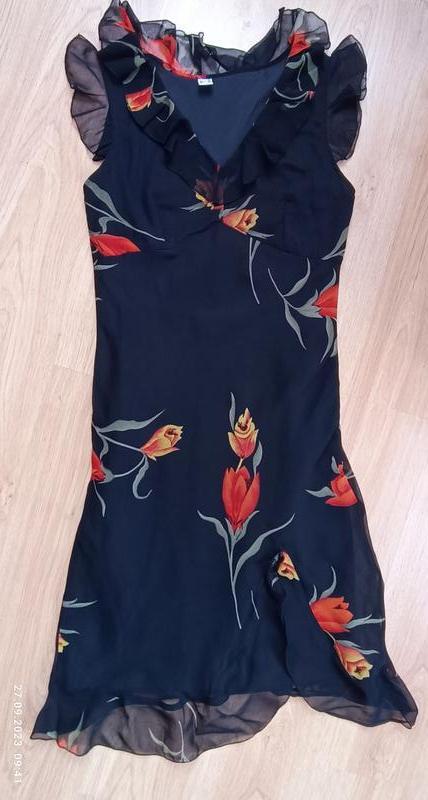 Очень удачный фасон, качественный шифон, снизу волан, на плечах тоже маленькие воланы, очень мягко ложаться. Состояние идеальное, есть пластмасса на бирке с магазина, но внутри бирка срезана. Размер s.