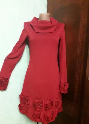 платье нарядное, темно красного цвета, в идеальном состоянии, длина по спинке 85 см., пог 38 см., пот 36 см., поб 46 см.. длина рукава от плеча 61 см. состав французский трикотаж