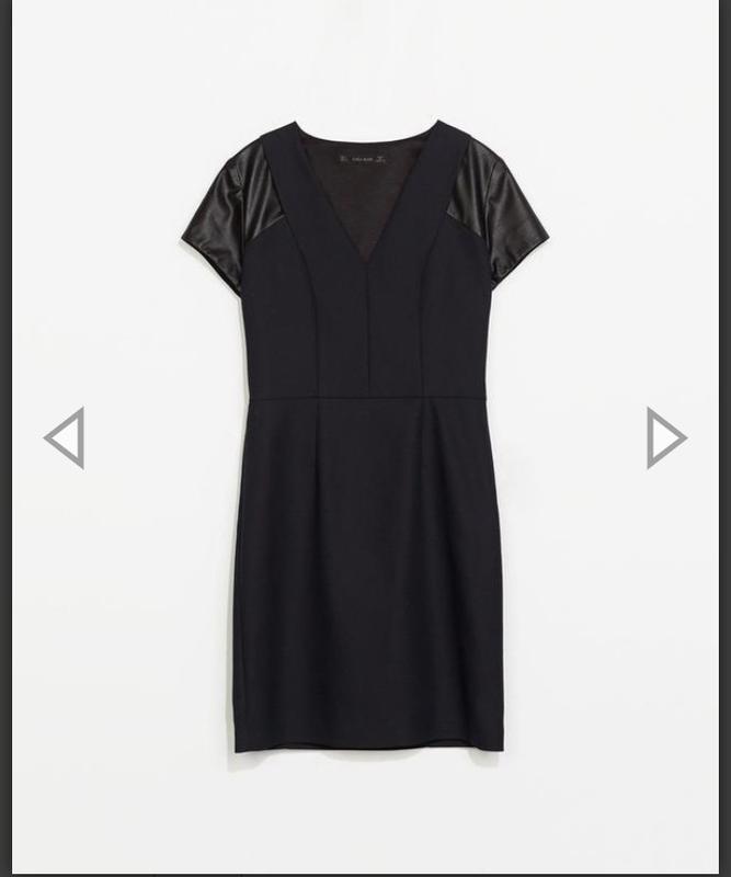 Navy Blue V-neck Faux Leather Details Work/Office Dress Короткое платье темно-синего цвета с Ѵ- образным вырезом и отделкой из искусственной кожи на рукавах. Застежка-молния сбоку. С коротким рукавом. Из коллекции Zara BАЅІС. размерѕ S 63% хлопок 27% поле ткань плотная практически не требует глажка комфортная к телу чуточку эластичная, мягкая имеет принт-белые капельки цвет нави-темный синий В хорошем состоянии. замеры: плечи 37см пог 42см пот 36см ширина по низу 44см длина по спинке 89см