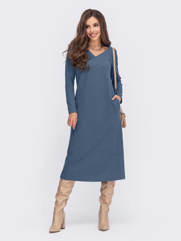 Теплое платье А-силуэта из ангоры с V-образным вырезом. Модель с длинным рукавом реглан и карманами в боковых швах. Размеры: от 46 до 52 Доставка: 💙 Укрпошта (повна передплата) 💛Новая Почта (полная подписка или накладной платеж с частичной подпиской) ✨Отправка 2-3 рабочие дни 🌿Есть возврат и обмен