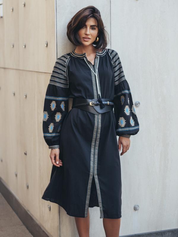 Платье-вышиванка прямого кроя из высококачественного турецкого материала. Изделие с круглой горловиной и V-образным разрезом на завязках с кисточками. Длинные рукава "реглан" со спущенной линией плечевого шва. Доставка: 💙 Укрпошта (повна передплата) 💛Новая Почта (полная подписка или накладной платеж с частичной подпиской) ✨Отправка 2-3 рабочие дни 🌿Есть возврат и обмен