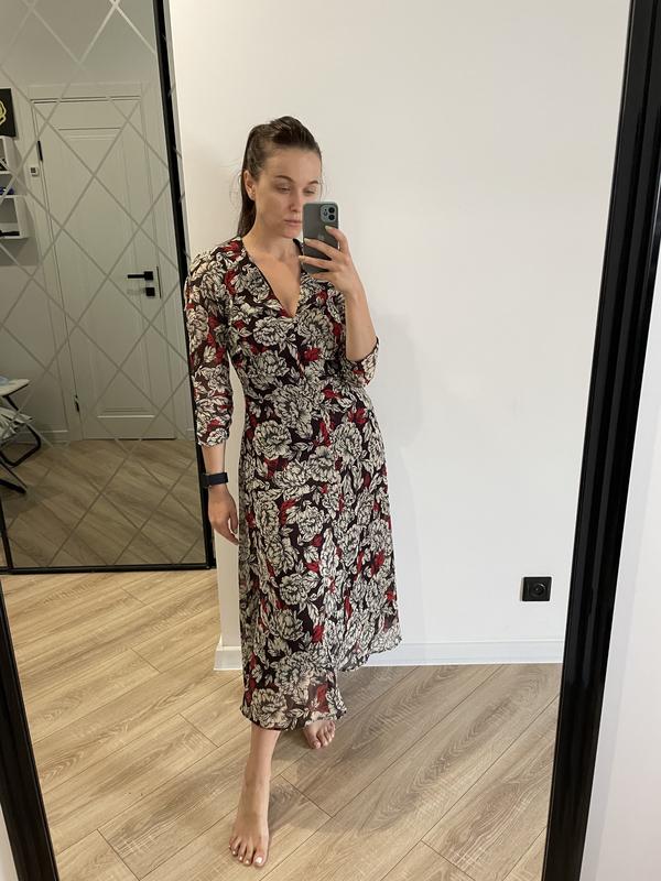 Плаття довжини міді Насичений квітковий принт V-подібний виріз Вкорочений рукав