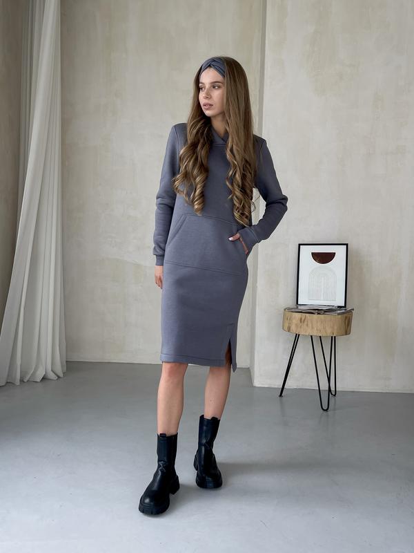 Теплое платье-солоха в подарок 🎁. Платье худи на флисе с карманом и разрезами по бокам. Манжеты на резинке. Ткань тянется, не кошлатится. Собственное производство- качество💪. ✅ Есть наложенный платеж с предоплатой за почту 🔄обмен/ возврат без проблем 🔖S-M,L-XL,2XL-3XL,4XL-5XL(сбрасывайте замеры, охотно поможем с выбором) 🧶турецкая тринитка на флисе «Люкс Пенье»-85% хлопок, 15% эластан 📐 Размерная сетка: 42-44 (S-M): обхват груди – 82-94см, обхват бедер – 89-96 см. 46-48 (L-XL): обхват груди – 94-100 см, обхват бедер – 98-110 см . 50-52 (2XL-3XL): обхват груди – 101-114 см, обхват бедер – 111-120 см. 54-56 (4XL-5XL): обхват груди – 116-124 см, обхват бедер – 121-128 см. Приведенные параметры условны, поскольку во многом зависят от фасона изделия,степени растяжимости ткани,особенностей фигуры. 👘 Параметры платья в разложенном виде: 42-44 (S-M): обхват груди - 45 см, обхват бедер - 45 см, длина - 102/106, длина рукава от горла - 71 см , ширина рукава - 17 см. 46-48 (L-XL): обхват груди - 50 см, обхват бедер - 50 см, длина - 106/109 см, длина рукава от горла - 72 см, ширина рукава - 18 см. 50-52 (2XL-3XL): обхват груди - 55 см, обхват бедер - 55 см, длина - 106/110 см, длина рукава от горла - 73 см, ширина рукава - 20 см.< 54-56 (4XL-5XL): обхват груди - 62 см, обхват бедер - 62 см, длина - 106/110 см, длина рукава от горла - 73см, ширина рукава - 22 см. Погрешность замеров может составлять +/- 1-2 см, это зависит от степени растяжимости ткани. 🧍♀️Параметры фотомодели: рост – 172 см, ОГ – 82 см, ОТ – 60 см, ОБ – 90 см. На фото показан размер: 42-44 (S-M). 🚛Доставка и оплата💵: -Оформление через Шафу на Новую и Укр почту(укр почта два раза в неделю) -Наложенный платеж только с предоплатой за НОВУЮ почту 150 грн -100% оплата на карту отправка Новой и Укр почтой(укр почта два раза в неделю)