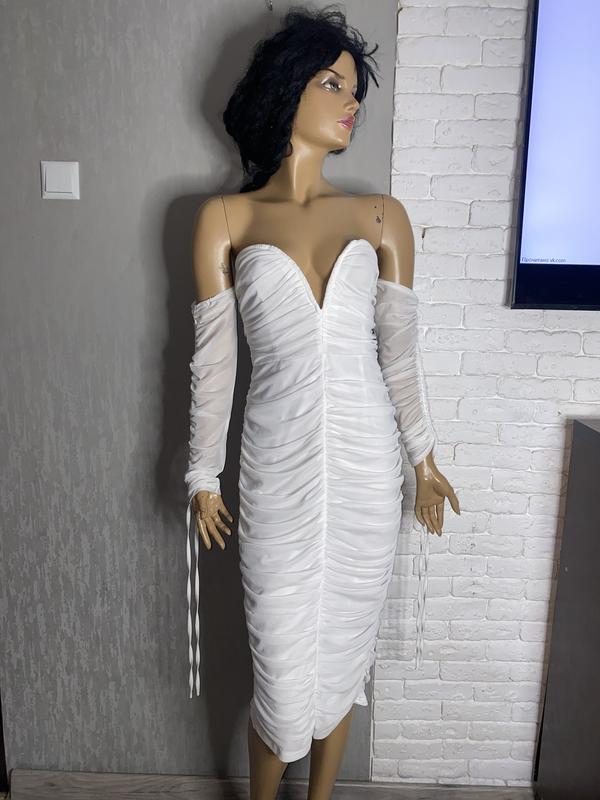 Платье миди с драпировкой платья с шикарным декольте и отдельными рукавами PLT PrettyLittleThing, L