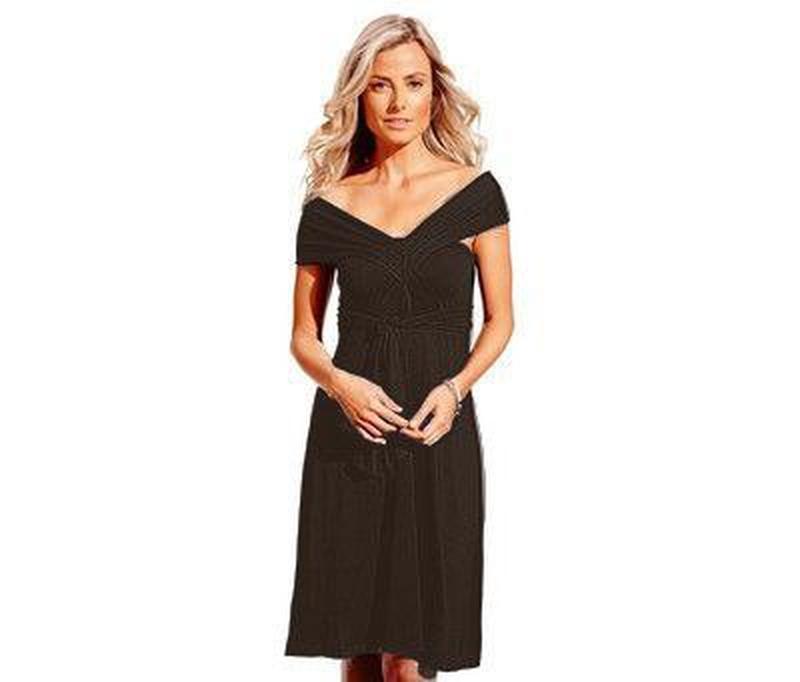 --Сукня бренда Tchibo. Новая, без бумажной бирки. Производство Германии. --Одежда марки TCМ ТСНIBO идет практически весь без бумажных бирок, по жидкому выключению и со срезанными внутренними бирками. Бирки срезают в лицензионных оригинальных вещах. Смахивает это делать сам бренд. --Планье имеет несколько вариантов ношения: как юбка, как платье-бандо и как платье с имитацией рукавов. Все регулируется под ваши объемы и рост. --Цвет: темно-коричневый. --Ткань: мягкий, ниспадающий, очень эластичный трикотаж. Состав: 95% вискоза, 5% эластан. --Верхня частина 14 см-двошарова, по верху вшита еластична резинка. Низ однослойный, трапецией. --Размер указан евро-36/38. На наш 42-44-й. --Вымеры: полуобъем верха-33, тянется до 43, полуобъём бедер-56, еще отлично тянется, длина от верха до низа-85, длина завязок-120 см. Перешлю Укр и Новой почтами.