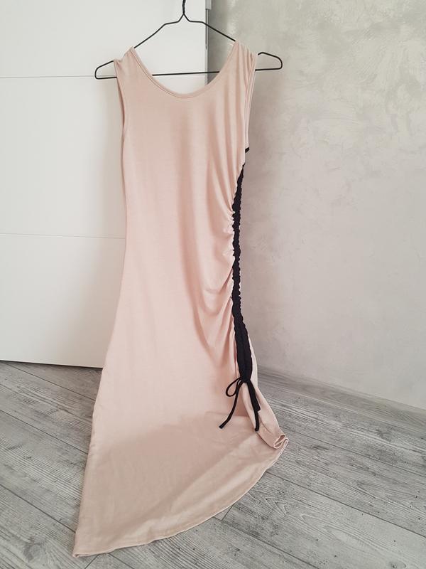стильное платье-миди с затяжками сбора