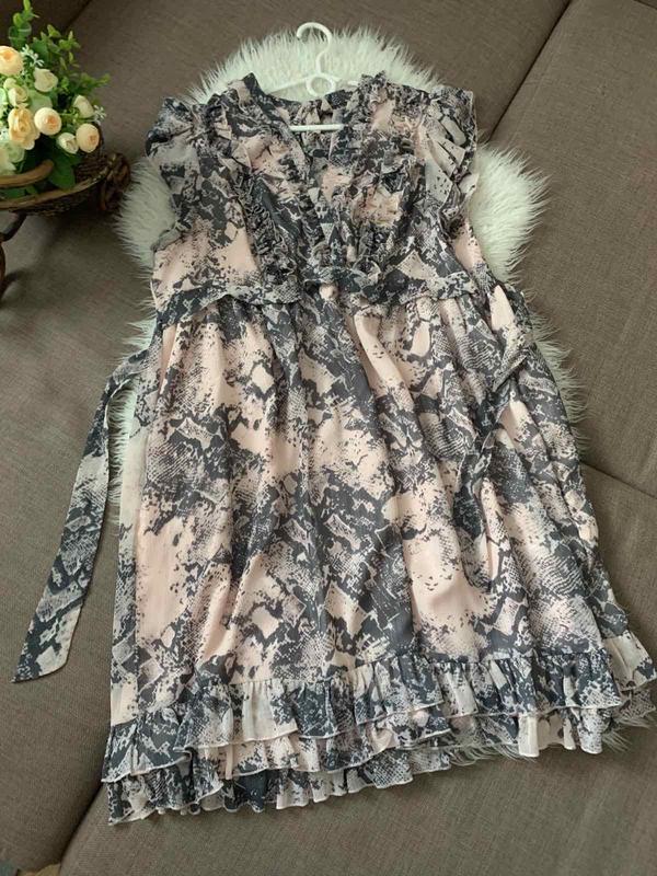 Шикарное, праздничное. На спицы разрез, который завязывается на бант. Фото не передает. Цвет тренд. Размер 18.