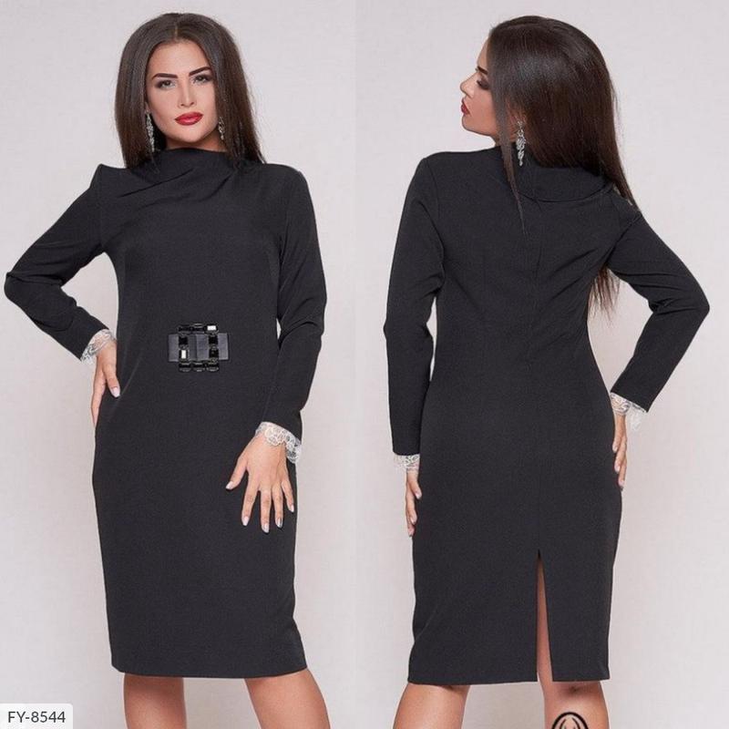 соСукня FY-8544 МОДЕЛЬ : В23- 127 Розмiри: 48, 50, 52, 54, 56, 58, 60, 62 Платье вечернее Тканина : креп - стрейч Отделка из кожи - стрейч Стелька эксклюзивная пряжка из металла и полированных черных камней Манжеты рукавов из белоснежного " французского кружева Потайная молния по спинке Длина изделия от 1м 08 - 1 м 10 см Атласная обработка внутренних швов Длина изделия пропорционально увеличивается от размера