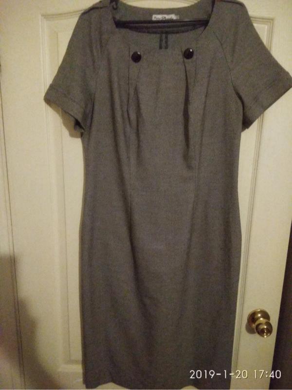 Жіночий сукня. Довжина до коліна. Збоку растегивается блискавка під рукавом.Довжина виробу 108,ПОГ-58,ПОТ46,ПОБ-55.