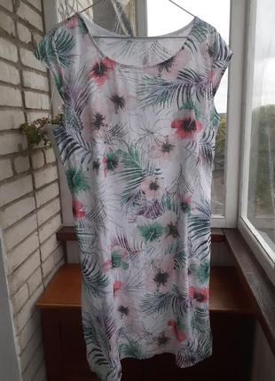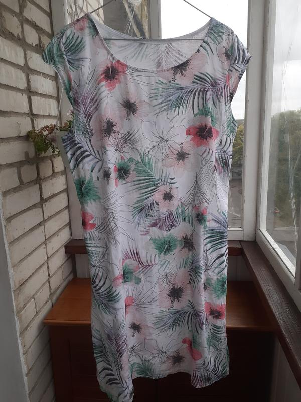Отличное льняное платье с трикотажными вставками подмышками 52 длина 95