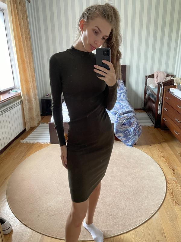 Платье в мелкий рубчик, очень удобная длина, красивый фасон и приятная к телу ткань. Добре сяде не M/L