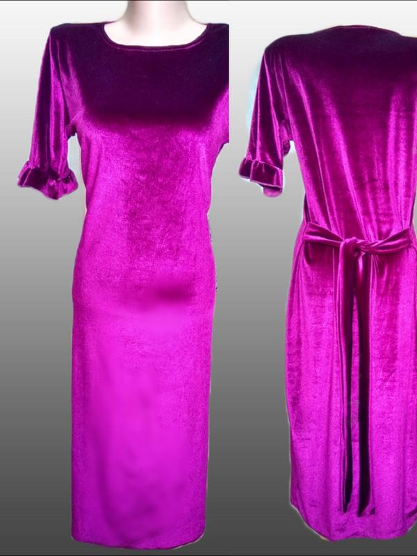 Изысканное нарядное бархатное миди платье boohoo цвет винное насыщенной фуксии малиновый Бренд boohoo Размер с этикетки М /UK12 / US8 / EUFR40 / EUDE38. Длина 109 см. По груди 44 см. Талия 46 см. Бедра 50 см. Плечи по спинке 38 см Прямое бархатное миди платье с круглым вырезом, с короткими рукавами с рюшами. Талия подчеркивается и регулируется сзади поясом. Невероятный цвет! Винный, глубокой фуксии, сочной малины. Красиво переливается на свету. К сожалению, на фото не удалось передать глубину оттенка. Состав 95% полиэстер 5% эластан. Платье одето раз. Бренд-бирки на фото