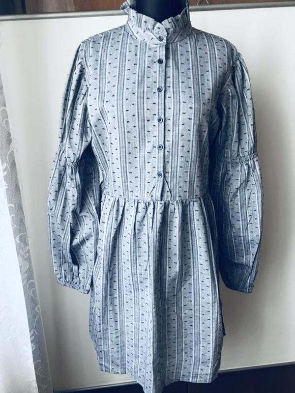 Перед замовленням обов’язково перечитайте умови, зробіть заміри, передивіться фото!!!! Сукня британського відомого бренду, 100% котон ,принт смужка , шиття, риски вишиті, по переду застібка на ґудзики,є запасний, відрізна по таліі, призібрано з боку схована блискавка, родзинка- рюша по шиі, цікавий рукав, по низу і над ліктем на гумці, створює двійний ліхтарик, стан і фасон максимально показано на фото, тканина не тягнеться, розмір указано 12, орієнтуйтеся по замірах. Заміри: довж-88, до таліі-40,5, пог під проймами-50, по виточках-47, пот-41, по стегон-64, ш плечей-38, по пройми рукава-24, по низу-12, гумка тягнеться, довж рукава-62, по стійки по шіі-20, заміри зроблено в спокійному стані, якщо якийсь важливий переміряю, повернення не має, відповім га всі питання, відправлю зручною вам поштою після оплати на картку Приват чи Моно, читайте розділ» про мене», накладний платіж з передплатою та безпечна оплата Розетка, Містекспрес ,Нова пошта. Укрпошта обговорюється індивідуально