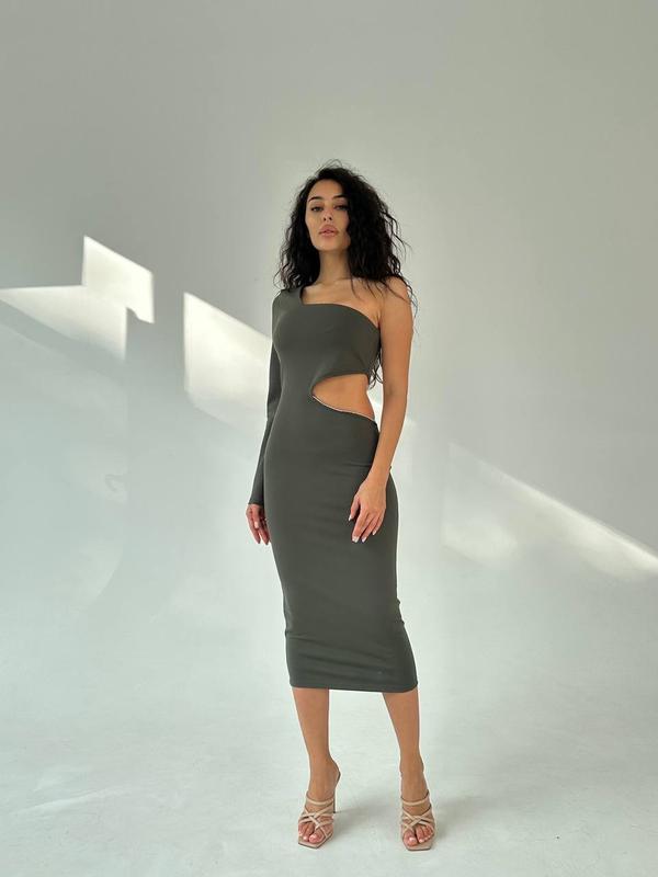 N 701 Платье из плотного стрейчевого трикотажа джерсизбоку потайная молния Декор-цепочка с кристаллами который можно снять Размер: S,M Цена: 1100 грн На заказ от L+200 грн до цены Замеры размера S Длина 106 см Длина рукава 56 см Объем груди до 93 см Объем талии до 74 см Объем бедер до 100 см Каждый следующий размер + 4 см в объемах
