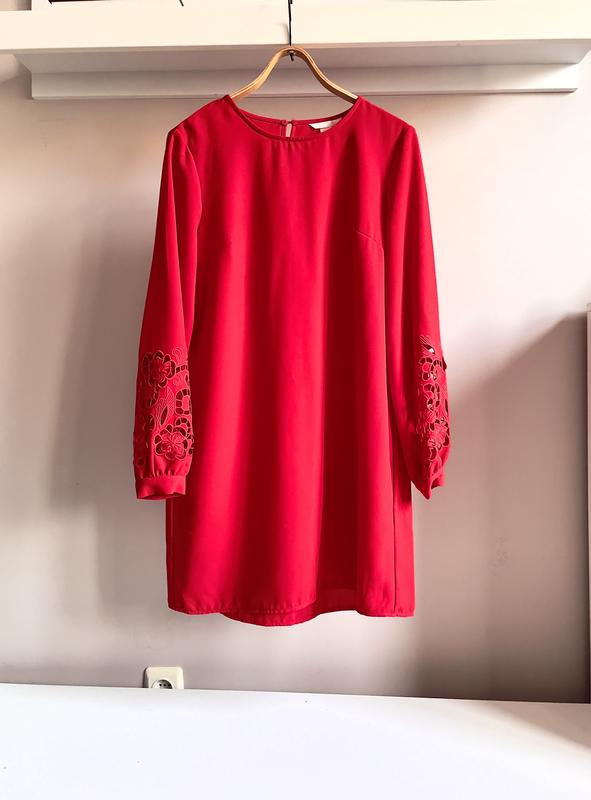 Элегантное красное платье с роскошными рукавами, удобное, свободного кроя, стильное и эффектное.Замеры смотрите на фото.