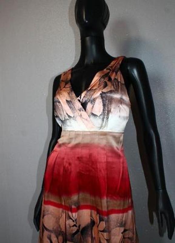 Очень красивое, цвета шампань и оттенка жемчужно-бордового. Новое, без бумажной бирки, в носке не было. Выглядит очень богато. Качественные швы и наощупь просто шик, на подкладке. размер указан 10,наша с-ка 100% шёлк\100% ацетат длина 100 см. ПОГ 46 см ПОТ 38 см. ПОБ 60 см