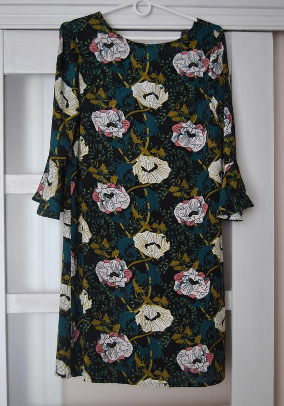 Плаття в квітковий принт Yessica Матеріал: віскоза Розмір вказаний на фото,фасон вільний,прямий ПОГ-46 см. ПОТ-48 см. ПОБ-50 см. довжина від плеча-90 см. рукав від плеча-42 см. Стан ідеальний,в носці не було. Кольори принту: зелений,чорний,гірчичний,бежевий,рожевий.