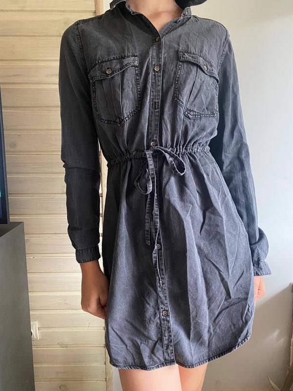 Платье с кармашками, воротничком и завязкой на талии Есть один дефект: отсутствует пуговица