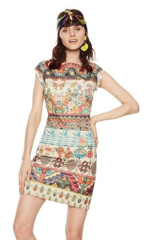 Невероятно красивое платье Desigual Размер М Made in Portugal Была очень желанной покупкой но, к сожалению, быстро стала больше (( Пошита из довольно плотной ткани и имеет подкладку. По всей площади платья идет яркий и красочный узор 45% вискоза 40% полиэстер 7% металлизированное волокно 8% полиамид