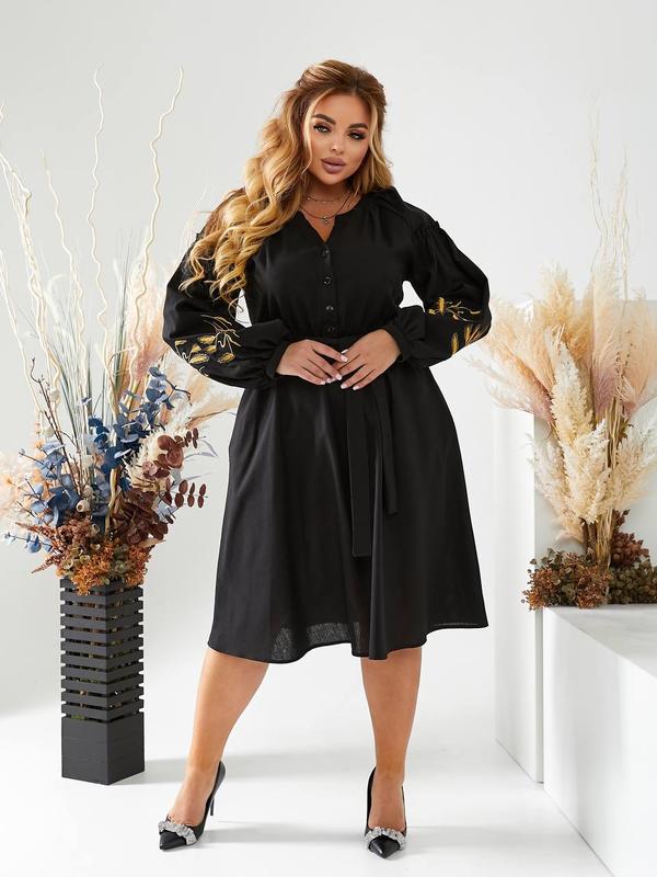 Женское платье вышиванка-миди с вышивкой цвета