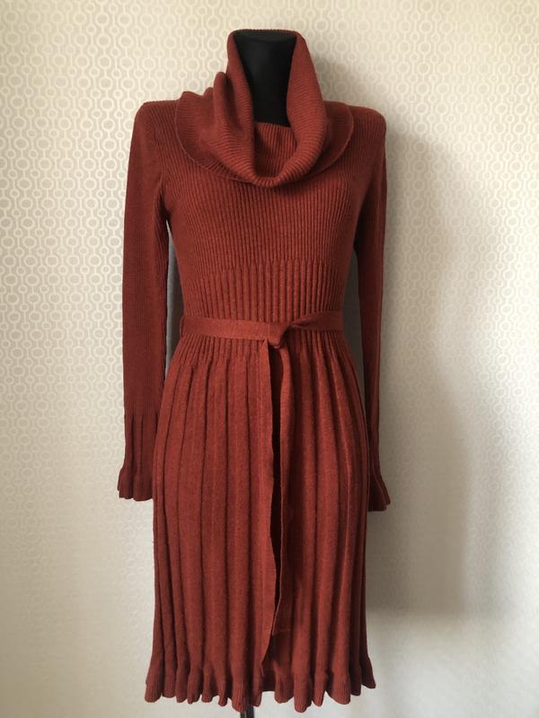 Ефектне напіввовняне плаття — светр цегляного кольору, розмір s-м-l