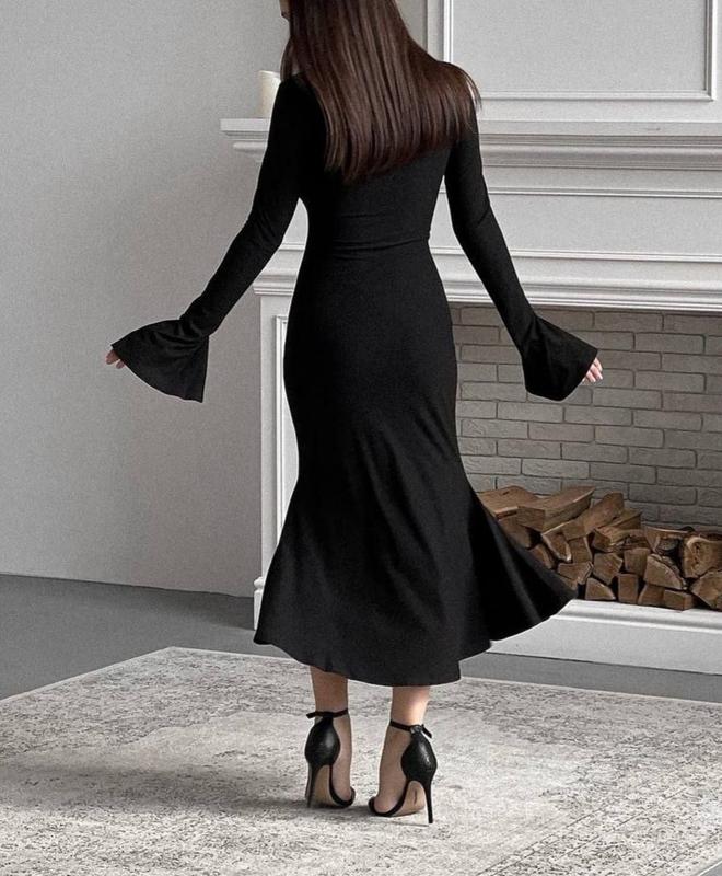 Елегантное черное платье миди🖤 ▪️Размеры: 42-44, 46-48 ▪️Ткань: микродайвинг ▪️Цвет: черный