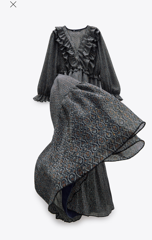 Платье MIDI ZARA С оборками в мелкий принт С длинными рукавами Размер XS, подойдет и на S