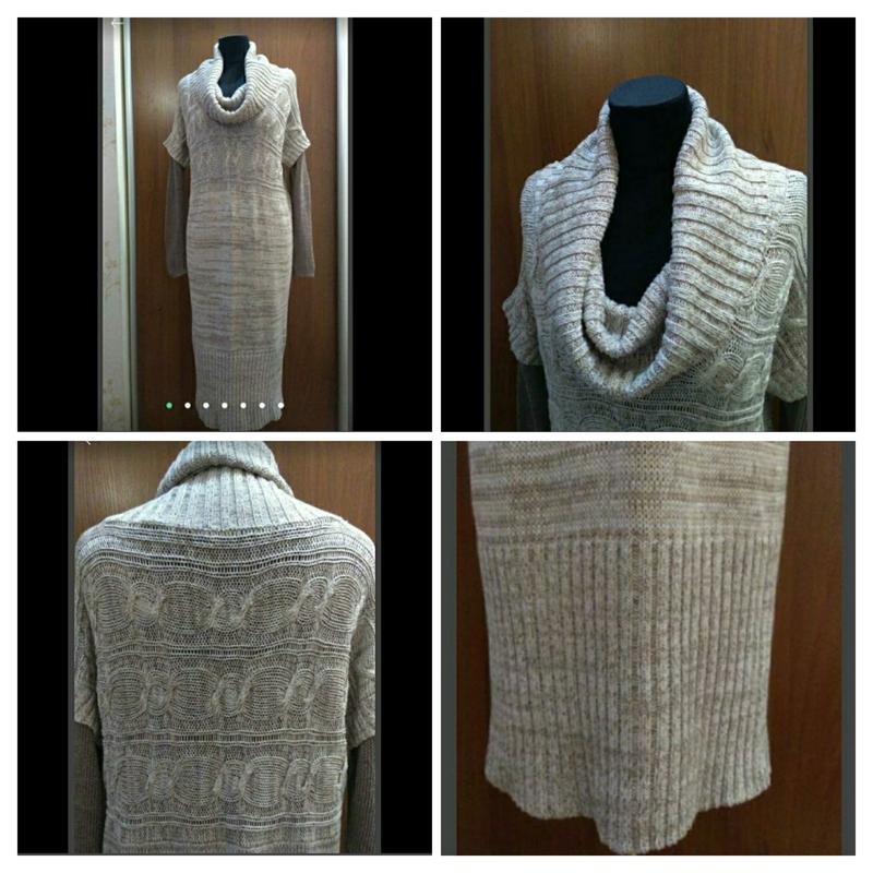 Платье трикотажное с фигурной вязкой. Смотрится очень стильно. Рукава можно легко снять(я их добавляла сама),будет туника безрукавка. В очень хорошем состоянии! Длина платья 106 см, обхват груди 104 обхват талии 96 обхват бёдер 98 ширина по низу 83 длина рукава от воротника 68 ширина рукава 24 За счёт вязки тянется хорошо, кроме рукава! - 100% соответствие фото и описанию! - Пересылка НП и Укрпочтой, за счёт покупателя
