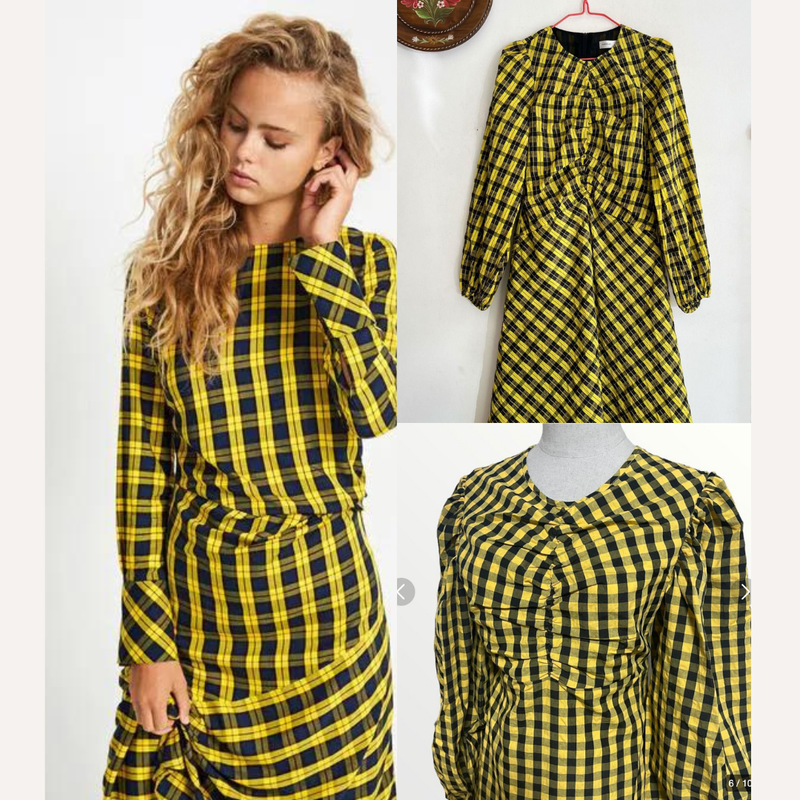 Трендовое платье платье-миди в клетку с широкими рукавами от inwear