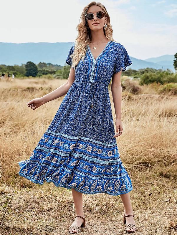 Сине-голубое платье миди в цветочный принт. Длина 39+86 ПО груди 45-46 ПО талии 34 ПО бёдер 60 плечи 37