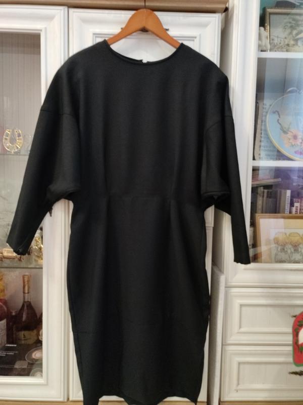 Платье миди, из шерсти, со сложным кроем, черная костюмная ткань, верх летучая мышь, низ с боковым разрезом, по спинке молния, на рукавах молнии. Бирка с брендом и составом ткани срезана, но очень напоминает модели известного бренда. BSD ориентироваться по замерам: длина платья по спине 102 см, длина рукава от линии горловины 69, ширина манжеты 11 см, ПОТ 41, ПОБ 51, боковой разрез 23 см, молния по спинке 53 см, по рукавам 18 см, фурнитура FAMY.