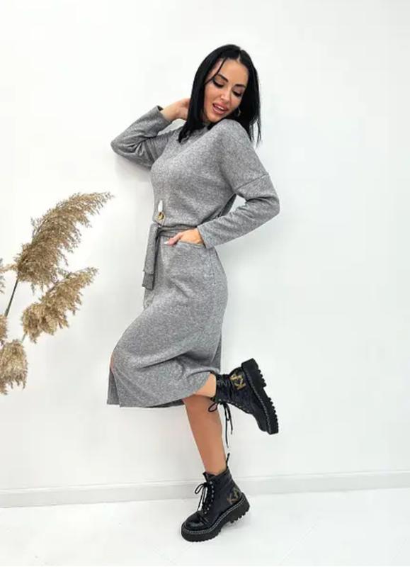 Теплое ангоровое платье с поясом "Juliette" Также в наличии размеры 42-44, 46-48. Зимой модницам не придется выбирать между красотой и удобством, ведь мы выпустили идеальную классическую новинку – ангоровое платье с поясом "Juliette". Модель имеет трендовую длину миди, стильный разрез и пояс ткани, который ненавязчиво акцентирует талию. Особенности платья Ангоровое платье "Juliette" отличается следующими особенностями: - сезон – демисезон/зима; - свободный крой; - воротник стойка-лодочка; - длина до середины голени; - стильный разрез спереди; - длинные рукава, спущенная линия плеча; - накладные карманы спереди; - материал – двойная ангора. Свободное платье миди – это не только элегантно, но и очень комфортно. Модель не мешает движению, подходит любому типу фигуры и не подчеркивает недостатки. Подчеркнуть женственные изгибы и скорректировать силуэт помогает тканевый пояс в тон платья. Двойная ангора создает ощущение уюта и согревает в холодную погоду. Изделие пошито в 5 актуальных оттенках, поэтому каждая женщина легко найдет себе свой вариант, который станет изюминкой ее гардероба. Характеристики Стиль:Casual Сезон:Демисезон/зима Длина от плеча:120-122 см Длина рукава от горловины:68-69 см Высота разреза: 27 см Материал:Двойная ангора  Таблица размеров Наличие на складе Цвет. 50-52 54-56 . Черный✓✓ Молочный✓✓ Мокко✓✓ Бордовый✓✓ Серый✓✓