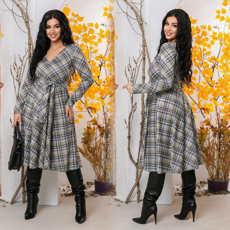 Сукня арт. david. 7401-1 Размер: 46-48; 50-52; 54-56; 58-60 Тканина: трикотаж ангора - софт Длина платья: 116 см. Длина рукава: 63 см. Стильное теплое платье с отрезанной талией, с пышной юбкой. Пояс из основной ткани идет в комплекте. Ткань приятная на ощупь, высокого качества, не скатывается.