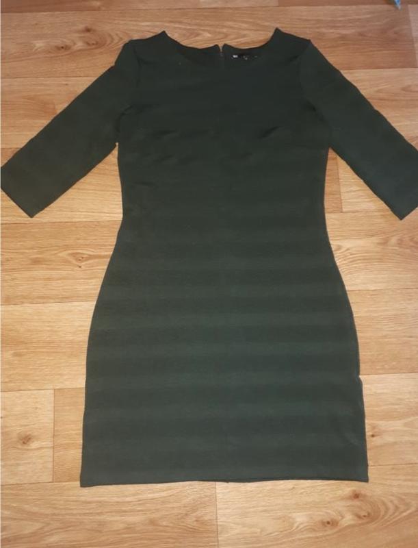 Размер L. Цвет - зеленый. Тканина плотна, тягнеться. Красиво подчеркивает фигуру. По спинке молния. Заміри на фото. Без дефектов.
