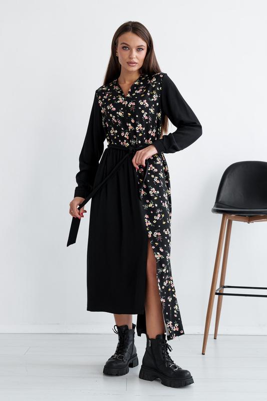 Жіночна сукня довжиною міді з довгим рукавом та асиметрічним низом. Оригінальне поєднання двох тканин. У бокових швах вільної спідниці розташовані кишені. У комплекті йде пояс із тканини сукні. Без застібки. Матеріал сукні: штапель (60% віскоза, 40% бавовна). Зріст моделі: 170см. Розмір одягу: 42 Довжина спинки правої частини: розмір 42 44 46 48 50 52 54 56 см 120 120 120 120 120 120 120 120 Довжина спинки лівої частини: розмір 42 44 46 48 50 52 54 56 см 133 133 133 133 133 133 133 133 Довжина рукава від горловини: розмір 42 44 46 48 50 52 54 56 см 72,1 72,5 72,8 73,1 73,5 73,8 74,1 74,3 Найбільший асортимент якісного жіночого одягу на нашому сайті ********** Замовлення можна оформити через Вайбер Розмір підбирайте відповідно таблиці: (але обов'язково враховуйте заміри виробу в описі товару вище)