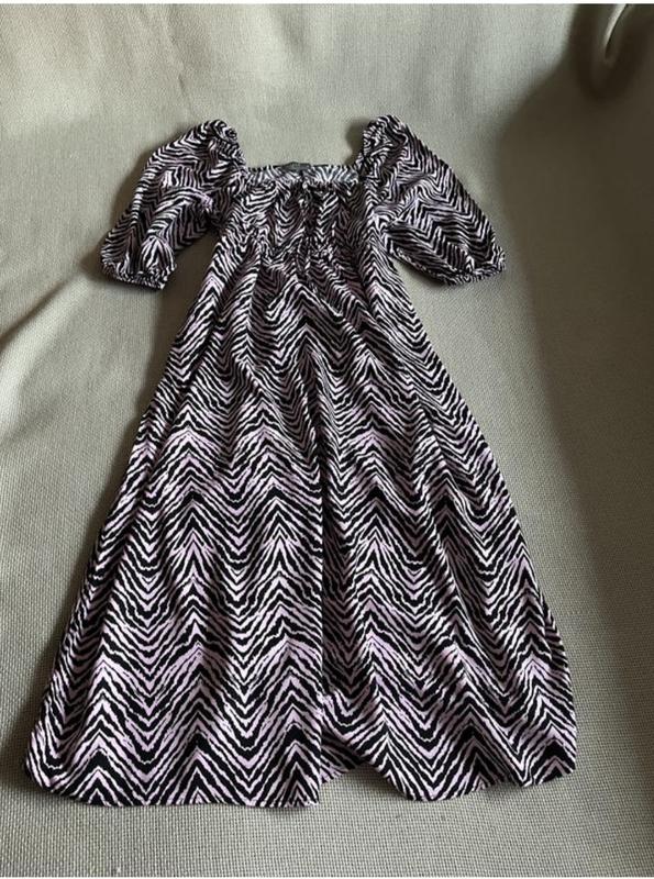 Трендова віскозна сукня міді з квадратним вирізом та об’ємними рукавами ,чудово виглядає на фігурі Довжина 115 см ПОГ 50 см ПОТ 40/48 см Талія на резиночці