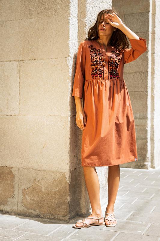 Невероятное платье с вышитыми птичками, планочка на пуговицах