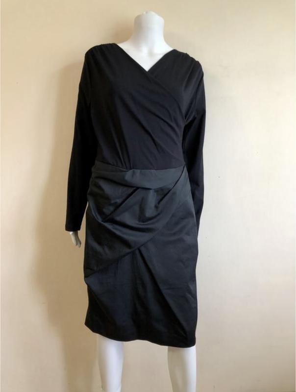 Красива сукня дорогого бренду. Застібається збоку на блискавку, є підкладка, ззаду невеликий розріз. Верхня частина трикотаж ПОг 50, тягнеться до 60 Пот 41 Поб 55 Довжина 100 Рукав 61 Плечі 42, тягнеться до 50