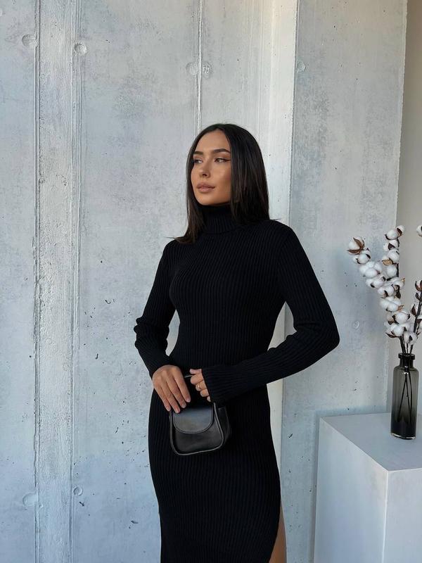 Вязаное платье- гольф в длине меди Модель: 117 osip Размер: oversize 42/48 Двойная вязка Акрил+вовна Цвета: черный, пудра, серый, карамель, бутылка 🎀 Платье с высоким воротником. Изделие выполнено из мягкой, приятной к телу пряжи с содержанием шерсти и акрила. Длина миди. Крой приталенный. Длинные узкие рукава. С боку декоративный разрез 💕 Замеры: ОГ:90/115 ОС:90/115 ДОВЖИНА РУКАВА:64 см ДОВЖИНА СУКНИ: 120 СМ (ДУЖЕ ДОБРЕ ТЯГНЕТЬСЯ)