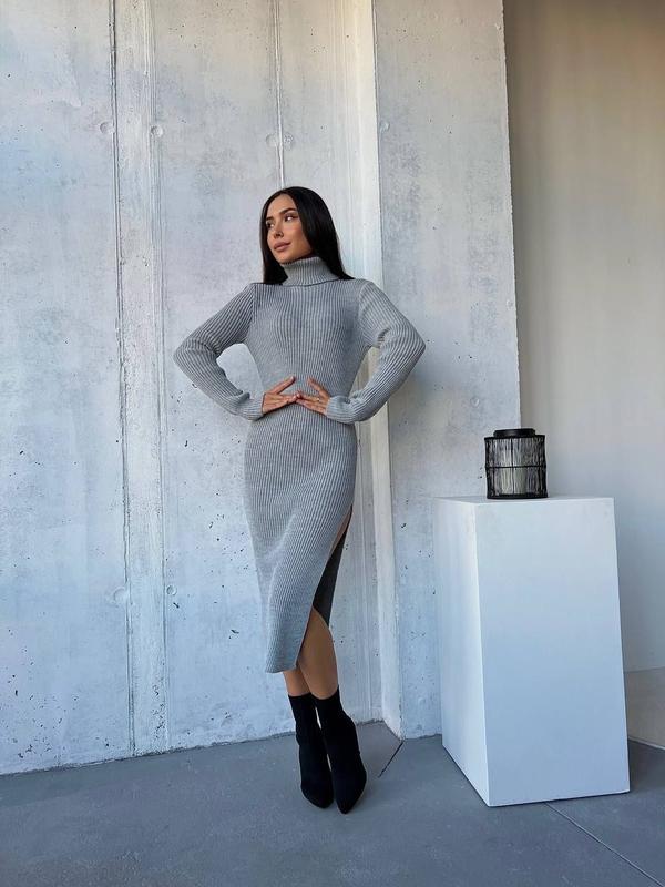 Вязаное платье- гольф в длине меди Модель: 117 osip Размер: oversize 42/48 Двойная вязка Акрил+вовна Цвета: черный, пудра, серый, карамель, бутылка 🎀 Платье с высоким воротником. Изделие выполнено из мягкой, приятной к телу пряжи с содержанием шерсти и акрила. Длина миди. Крой приталенный. Длинные узкие рукава. С боку декоративный разрез 💕 Замеры: ОГ:90/115 ОС:90/115 ДОВЖИНА РУКАВА:64 см ДОВЖИНА СУКНИ: 120 СМ (ДУЖЕ ДОБРЕ ТЯГНЕТЬСЯ)