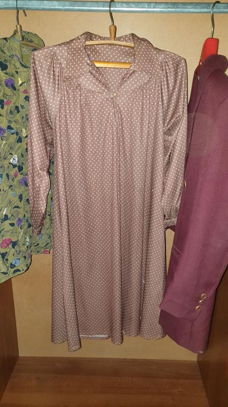 Платье в горошек ●Платье свободного кроя ●Длина 104 см ●ПОГ 55 см ●Рукав идет от шеи 56 см ●Низ свободный Возможна скидка
