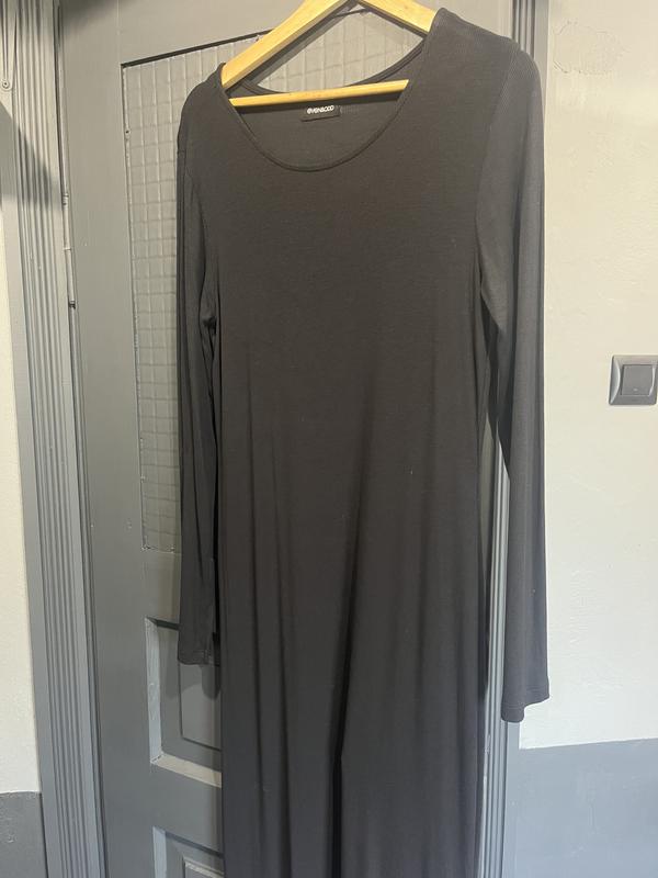Черное платье в рубчик, длинное платье, платье миди, платье