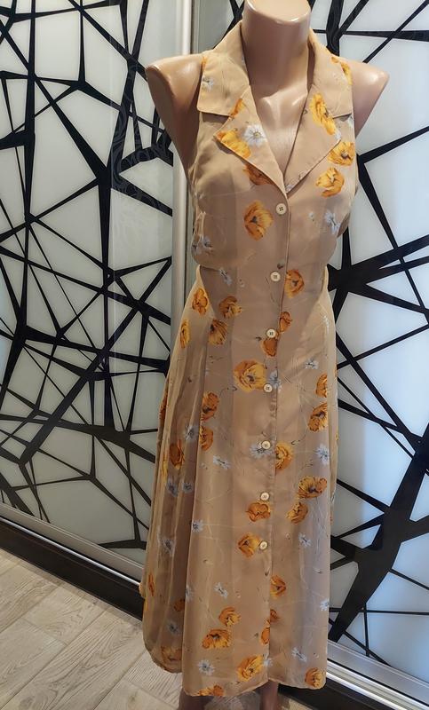 Шифоновое платье миди в цветочный принт на пуговицах с отложным воротником. Состояние идеалтное, без дефектов. Подойдет на 44-46 размер.