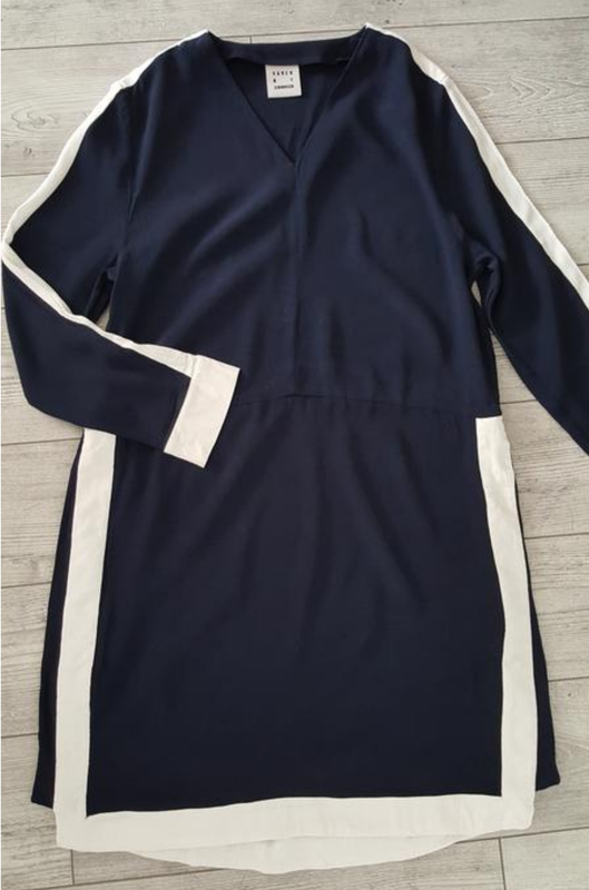 Просьба через кнопку КУПИТЬ оформлять после договоренности❤ Стильное платье из натуральной визкозы Karen by Simoncen. Интересный фасон, длинный рукав, v- образный вырез горловины. Очень стильно смотрится, цвет тёмно-синий